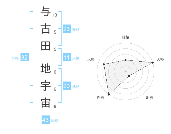 与古田 地宇宙さんを姓名の画数から五運を鑑定