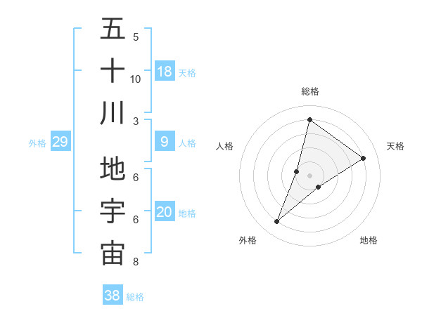 五十川 地宇宙さんを姓名の画数から五運を鑑定