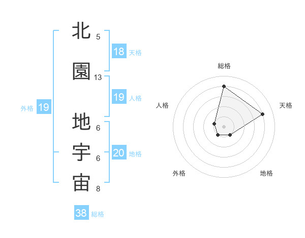 北園 地宇宙さんを姓名の画数から五運を鑑定