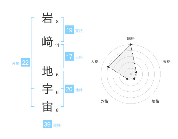 岩﨑 地宇宙さんを姓名の画数から五運を鑑定