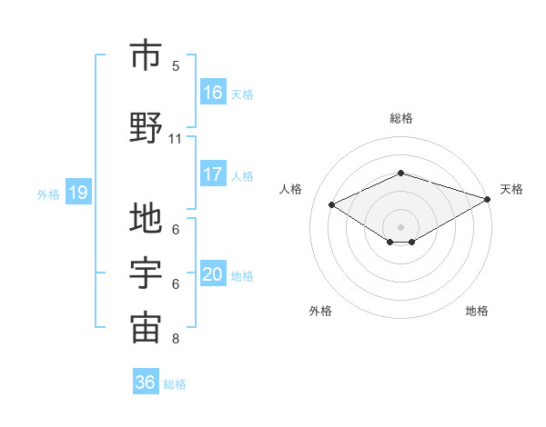 市野 地宇宙さんを姓名の画数から五運を鑑定