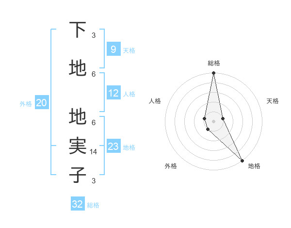 下地 地実子さんの総格は32画の5点!