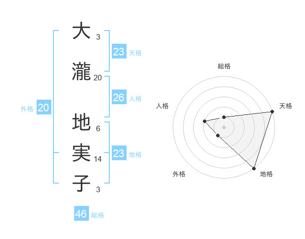大瀧 地実子さんを姓名の画数から五運を鑑定