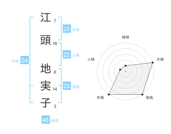 江頭 地実子さんを姓名の画数から五運を鑑定