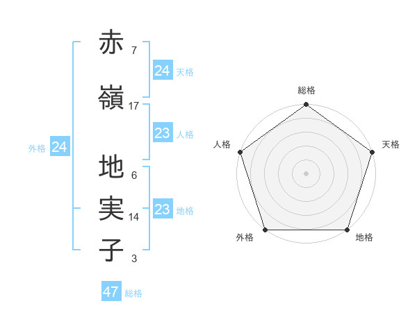 赤嶺 地実子さんの総格は47画の5点!