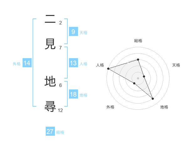 二見 地尋さんの総格は27画の3点!