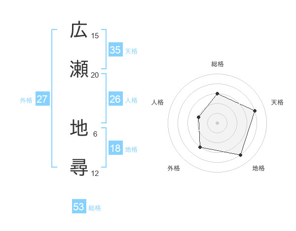 広瀬 地尋さんを姓名の画数から五運を鑑定