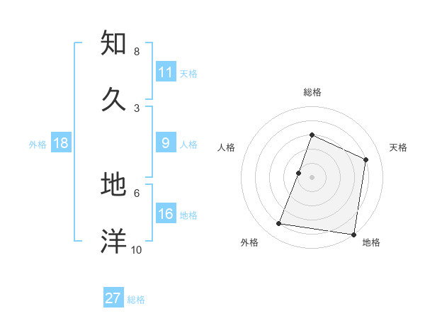 知久 地洋さんの総格は27画の3点!