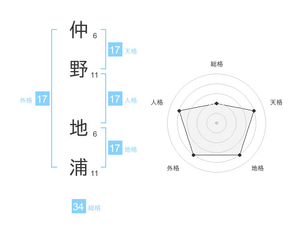 仲野 地浦さんを姓名の画数から五運を鑑定