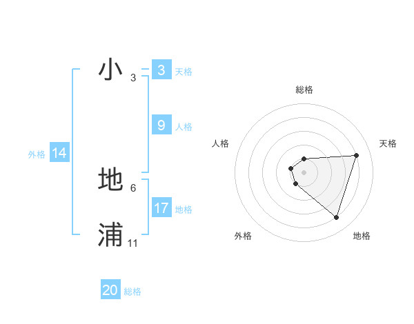 小 地浦さんの総格は20画の1点!