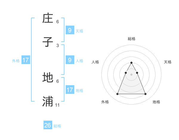 庄子 地浦さんの総格は26画の2点!