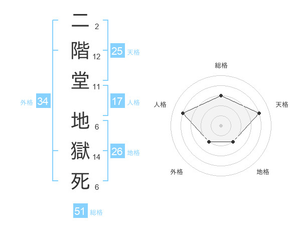 二階堂 地獄死さんを姓名の画数から五運を鑑定