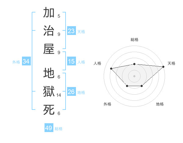 加治屋 地獄死さんを姓名の画数から五運を鑑定
