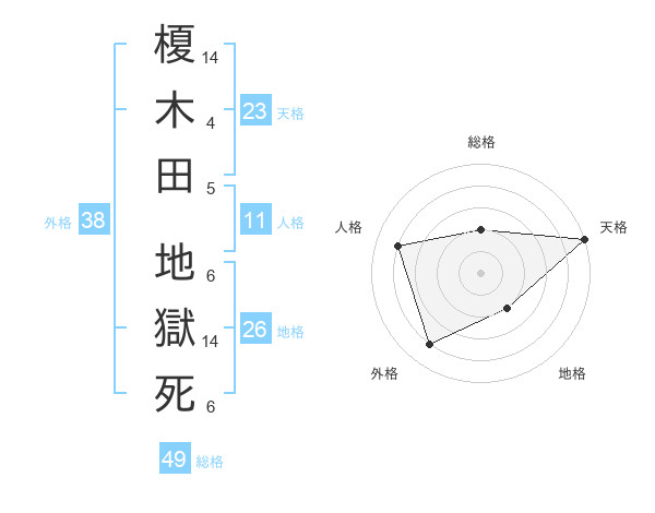 榎木田 地獄死さんの総格は49画の2点!