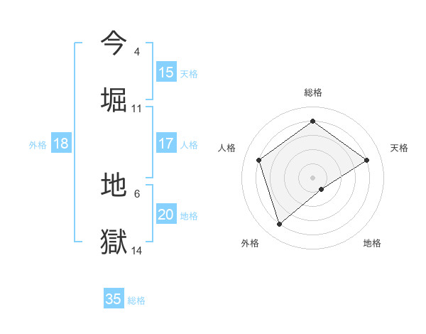 今堀 地獄さんを姓名の画数から五運を鑑定