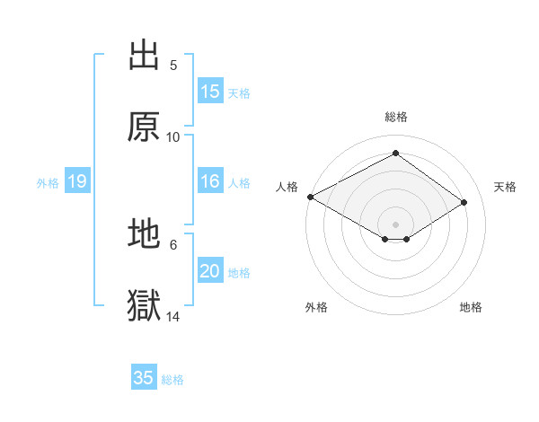 出原 地獄さんの地格は20画の1点!