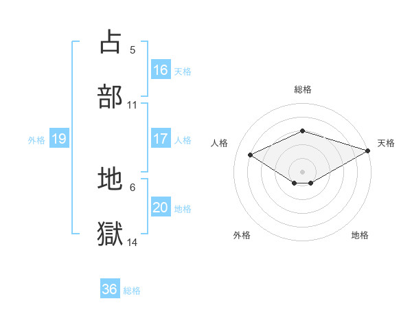 占部 地獄さんの地格は20画の1点!