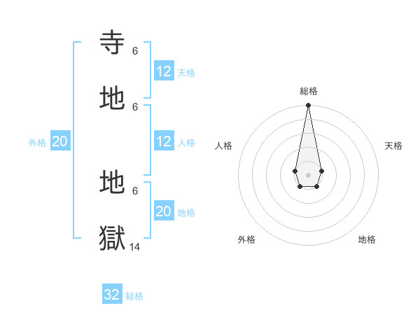 寺地 地獄さんの地格は20画の1点!