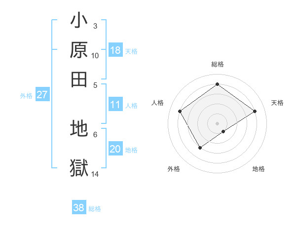 小原田 地獄さんを姓名の画数から五運を鑑定