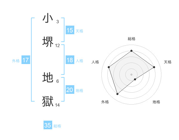 小堺 地獄さんを姓名の画数から五運を鑑定