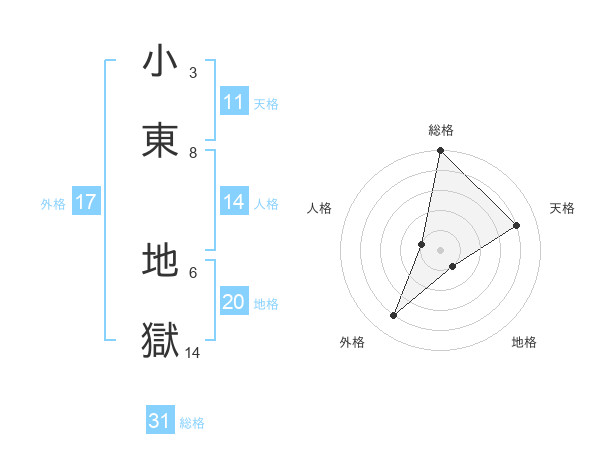 小東 地獄さんの外格は17画の4点!