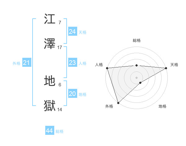 江澤 地獄さんの総格は44画の2点!
