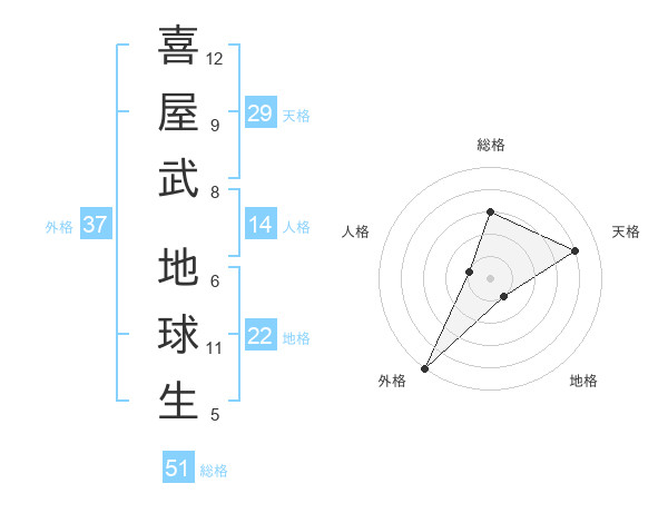 喜屋武 地球生さんを姓名の画数から五運を鑑定