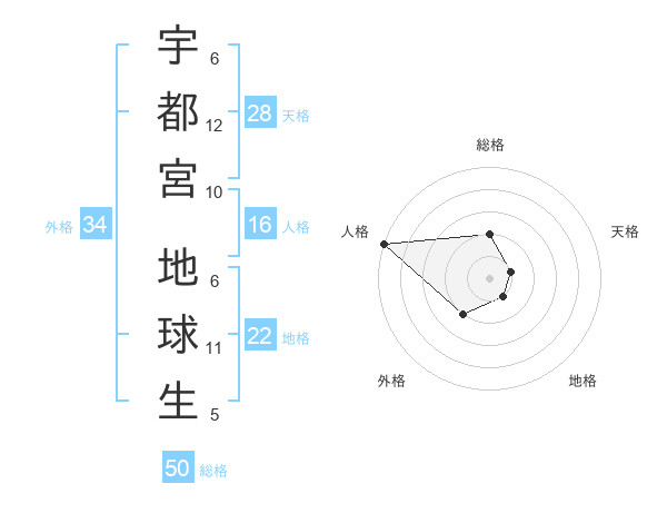宇都宮 地球生さんを姓名の画数から五運を鑑定