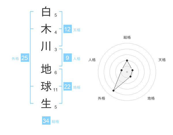 白木川 地球生さんを姓名の画数から五運を鑑定
