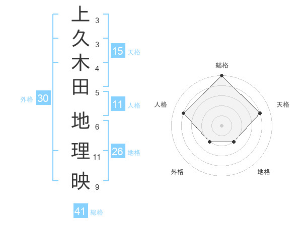 上久木田 地理映さんを姓名の画数から五運を鑑定