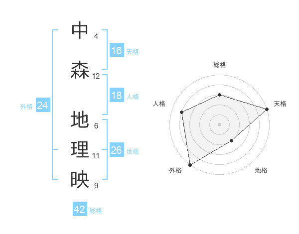 中森 地理映さんの総格は42画の3点!