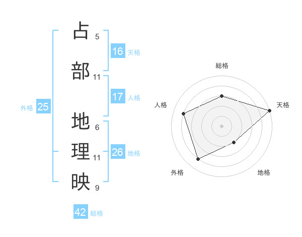 占部 地理映さんの外格は25画の4点!