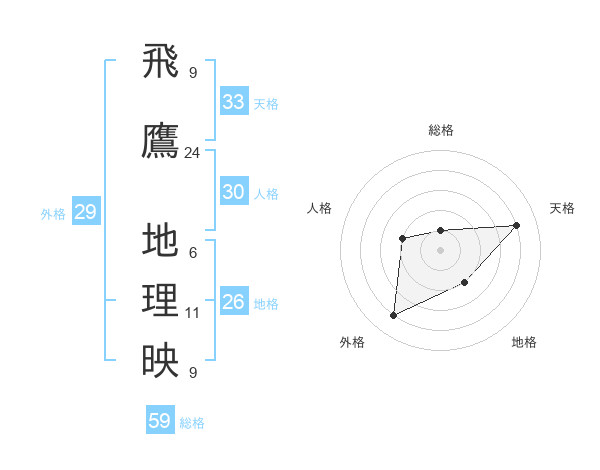 飛鷹 地理映さんを姓名の画数から五運を鑑定