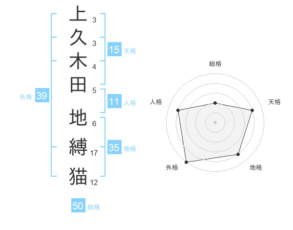 上久木田 地縛猫さんを姓名の画数から五運を鑑定