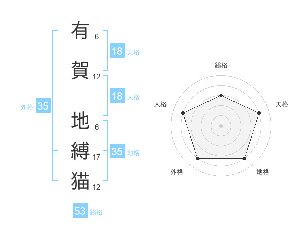 有賀 地縛猫さんを姓名の画数から五運を鑑定