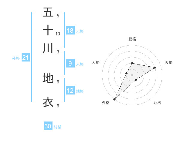 五十川 地衣さんの外格は21画の5点!