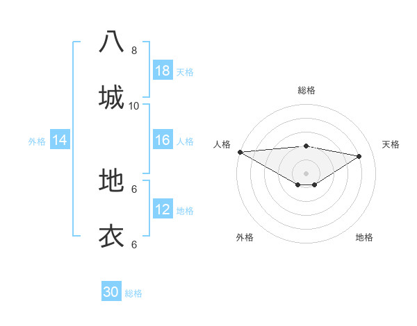 八城 地衣さんの総格は30画の2点!