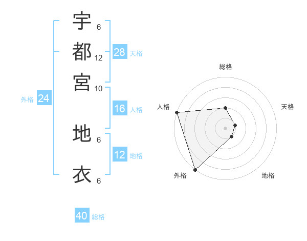 宇都宮 地衣さんを姓名の画数から五運を鑑定