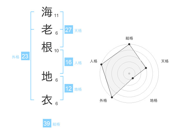 海老根 地衣さんを姓名の画数から五運を鑑定