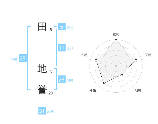 田 地誉さんの総格は31画の5点!