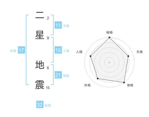 二星 地震さんの地格は21画の5点!