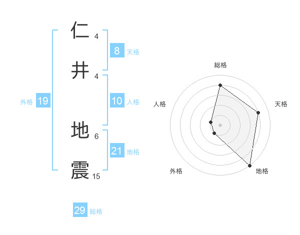 仁井 地震さんの総格は29画の4点!