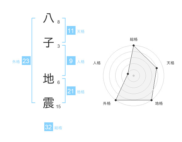 八子 地震さんの地格は21画の5点!