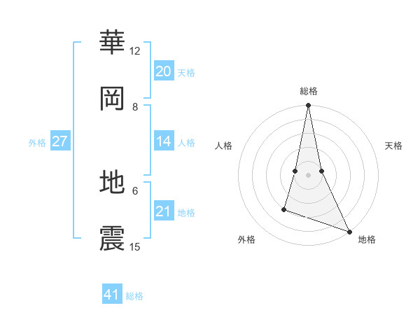 華岡 地震さんの総格は41画の5点!