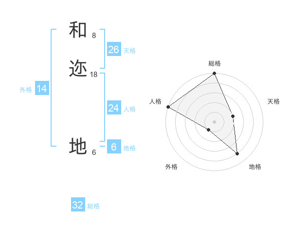 和迩 地さんの外格は14画の1点!