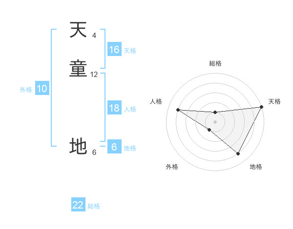 天童 地さんの総格は22画の1点!