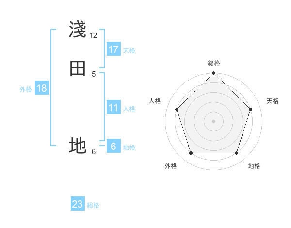 淺田 地さんの総格は23画の5点!