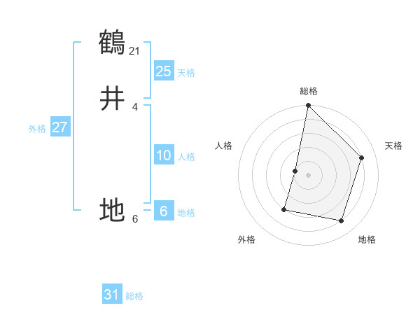 鶴井 地さんの総格は31画の5点!