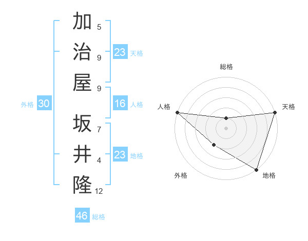 加治屋 坂井隆さんを姓名の画数から五運を鑑定