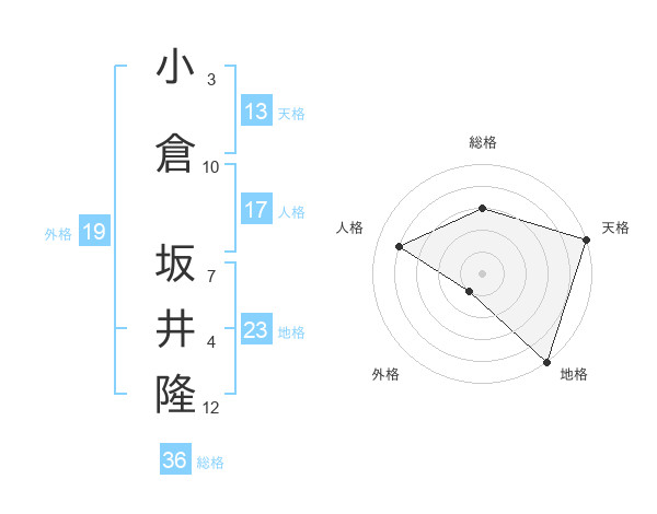 小倉 坂井隆さんを姓名の画数から五運を鑑定